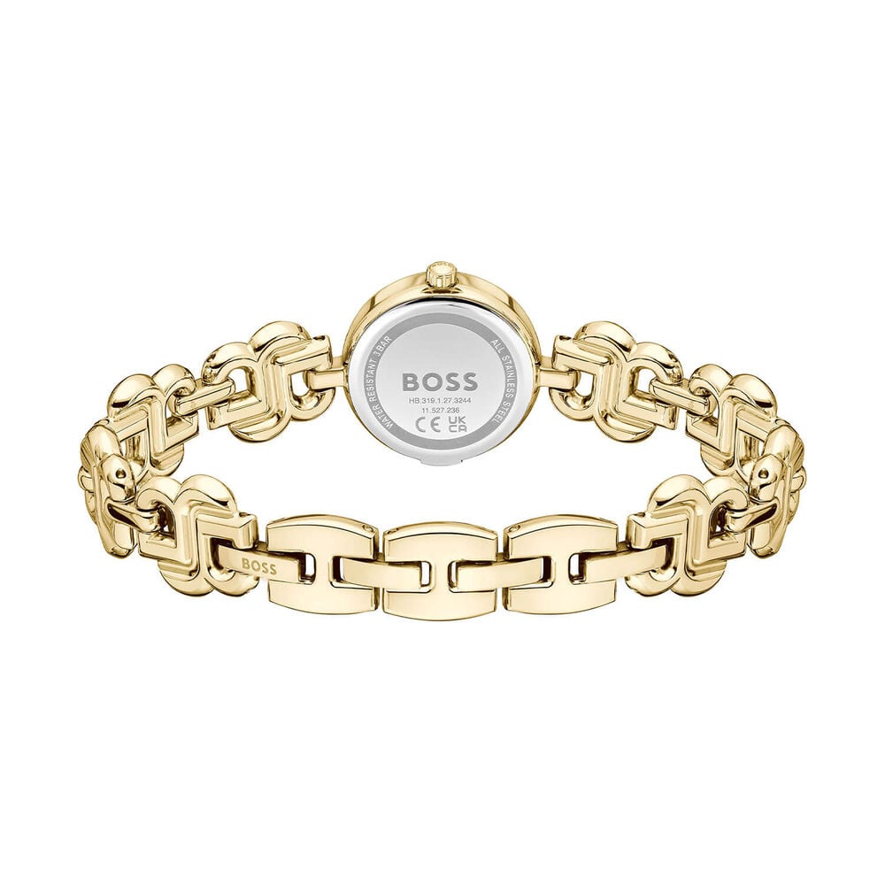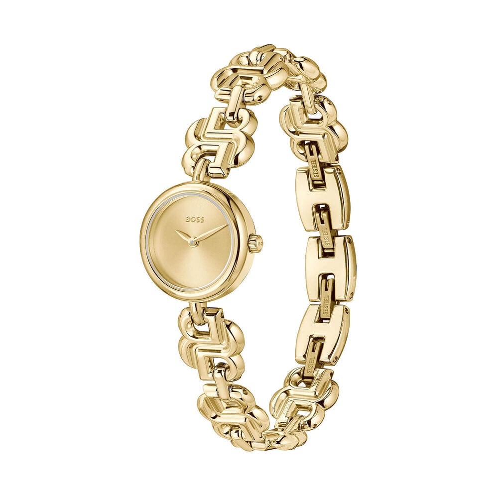 This watch combines timeless elegance with modern design. Featuring a luxurious gold-tone stainless steel case and bracelet, it exudes refined sophistication. The sleek gold dial introduces a subtle yet striking contemporary flair. Its minimalist hour markers and slender hands create a polished, understated look. Equipped with a dependable quartz movement, it delivers accurate timekeeping. Ideal for elevating both formal attire and everyday ensembles.