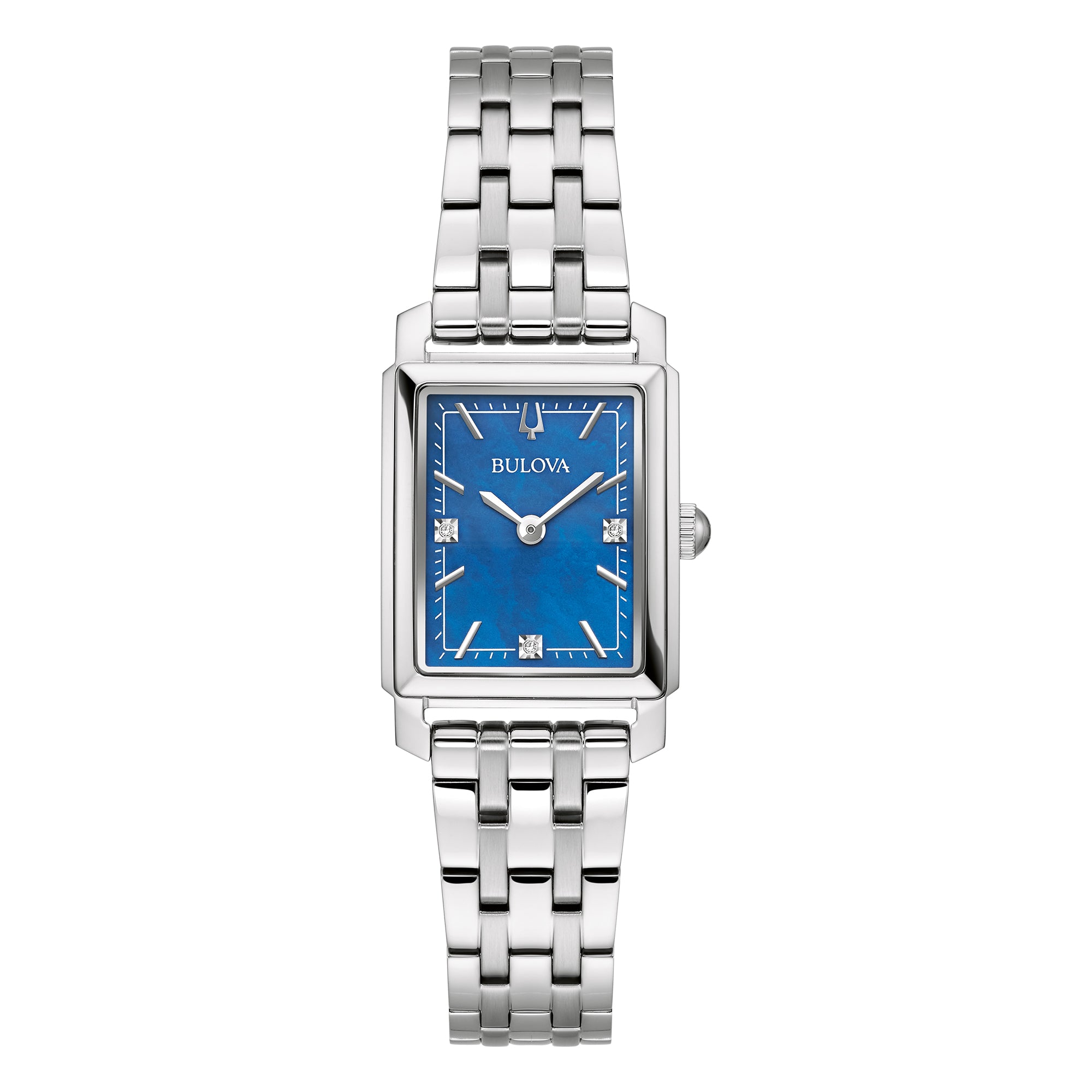 Bulova Sutton Ladies Rectangular Watch Blue Diamond 96P245