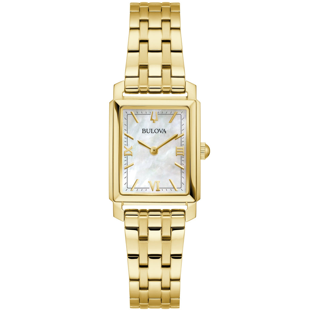 Bulova Sutton Ladies Rectangular Watch Gold MOP Diamond 97L177