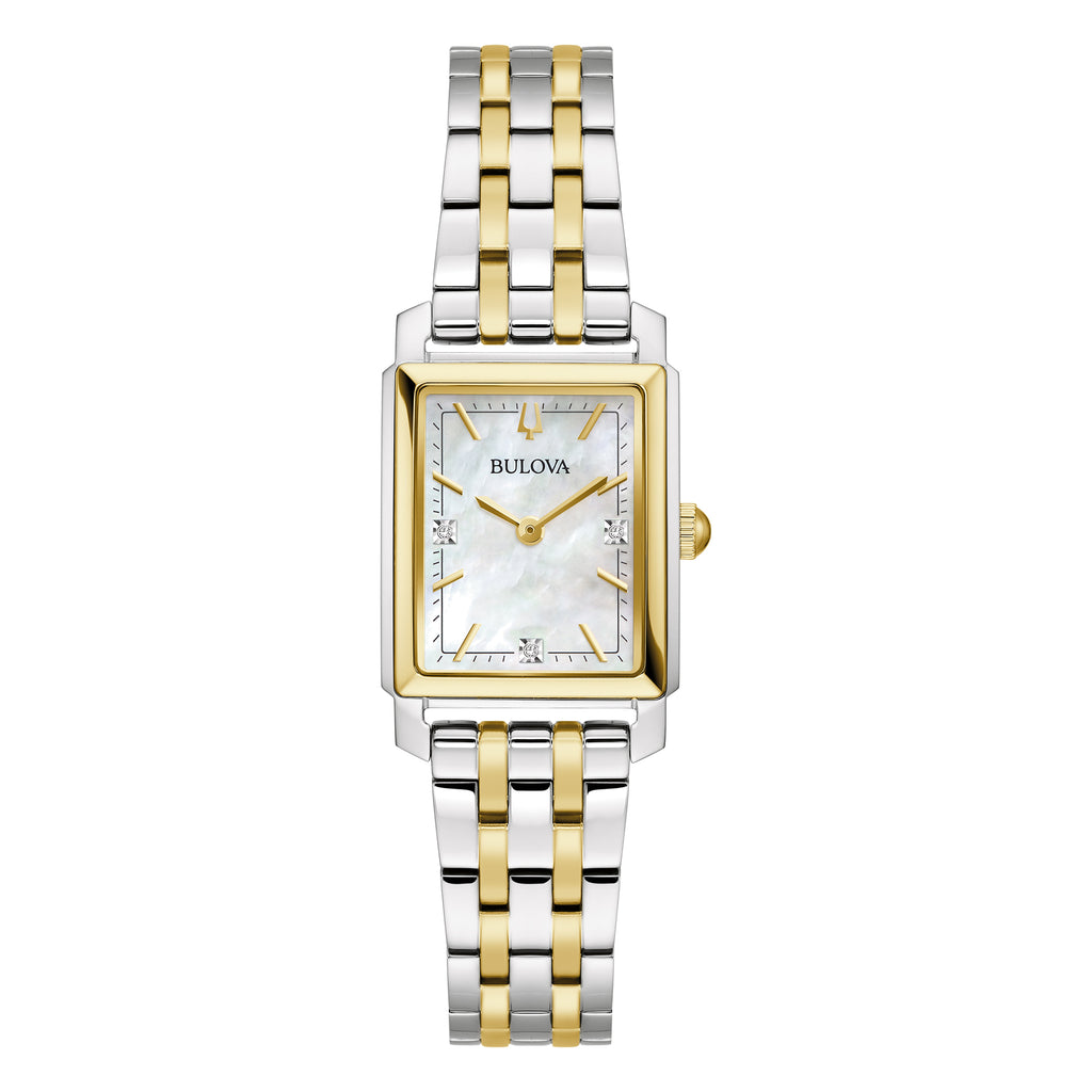 Bulova Sutton Ladies Rectangular Watch Two-Tone MOP Diamond 98P220