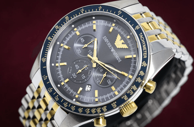 Emporio Armani Tazio Men's Watch Two Tone with Blue Dial AR6088