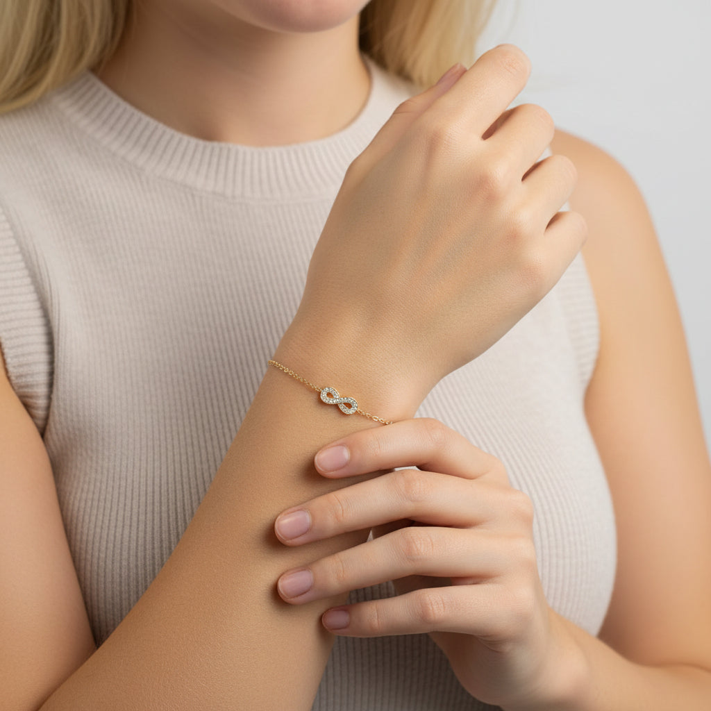 Add a touch of elegance to your outfit with our Infinity Diamond Pavé Bracelet. Made with a pave set design and featuring an infinity logo, this bracelet is a timeless piece that will elevate any look. Treat yourself or a loved one to a symbol of infinite love and style.