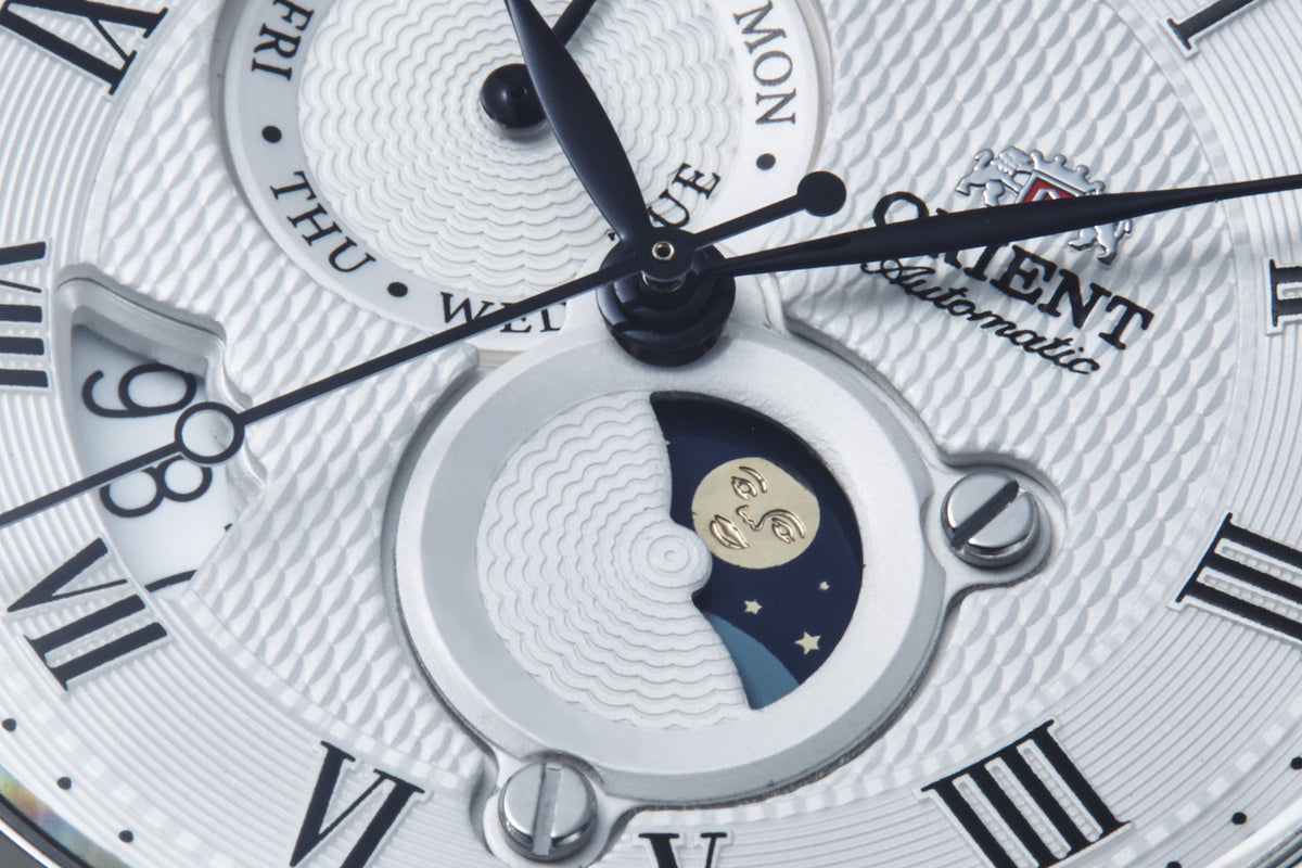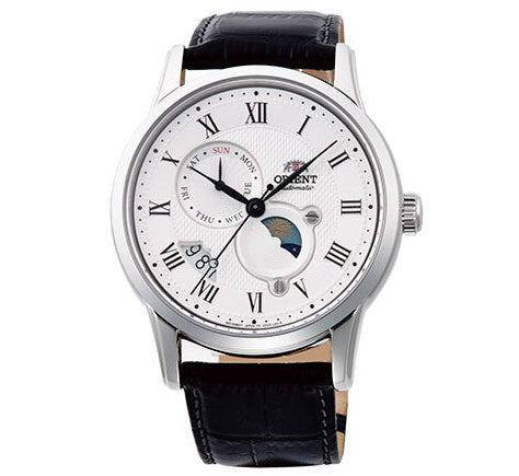 Orient Sun & Moon Men's Watch Silver / Black Leather RA-AK0008S30B