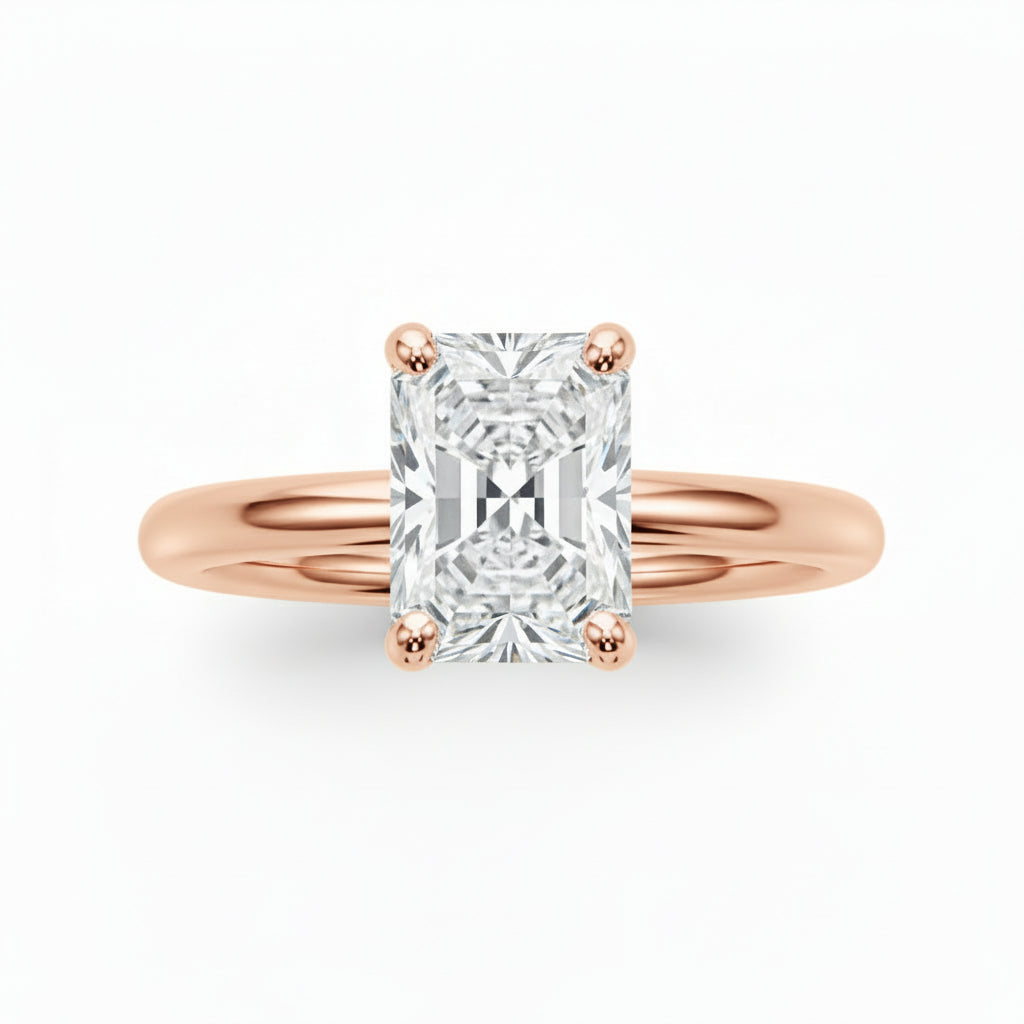 Elevate your love with the Radiant Solitaire Engagement Ring. Featuring a stunning 4 claw set Radiant cut lab-grown diamond and cathedral-like head setting, this single stone ring is a symbol of timeless elegance and sophistication. Perfect for the one-of-a-kind love story you and your partner share.
