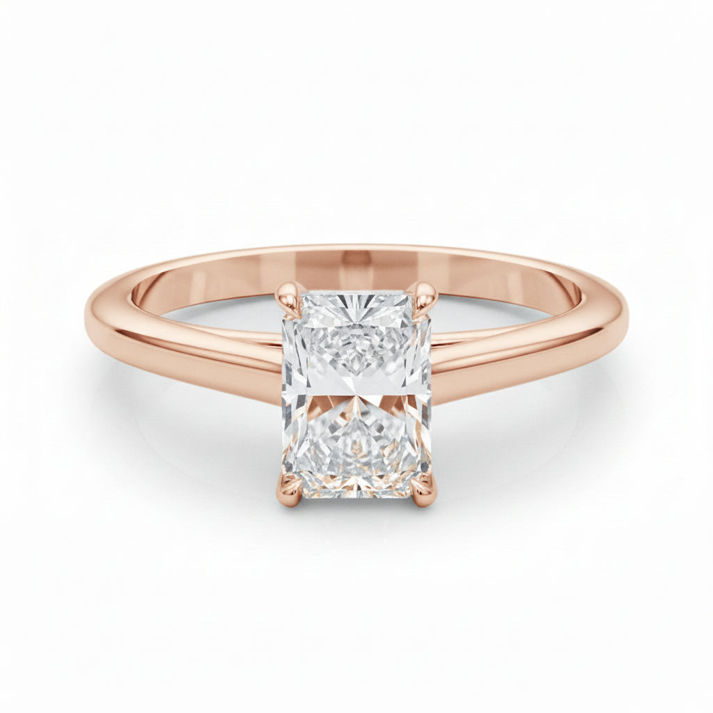 Elevate your love with the Radiant Solitaire Engagement Ring. Featuring a stunning 4 claw set Radiant cut lab-grown diamond and crossover-like head setting, this single stone ring is a symbol of timeless elegance and sophistication. Perfect for the one-of-a-kind love story you and your partner share.