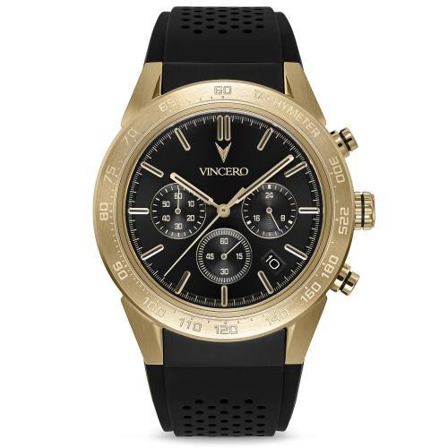 Vincero Rogue Mens Black Silicone Gold Case Sapphire Chronograph Watch