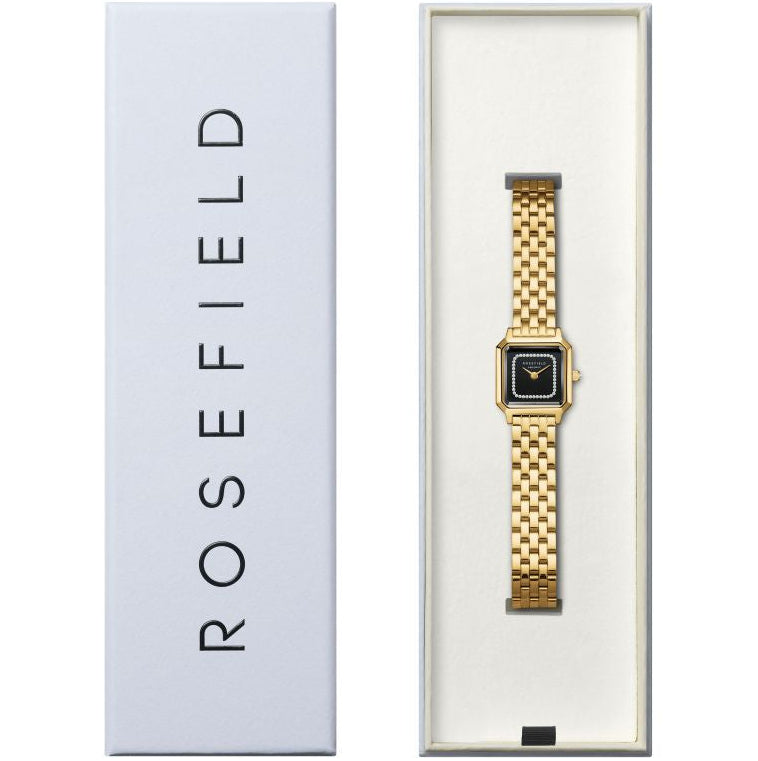 Rosefield Boxelle Black Crystals Frame Ladies Watch Gold BBGSG-B09