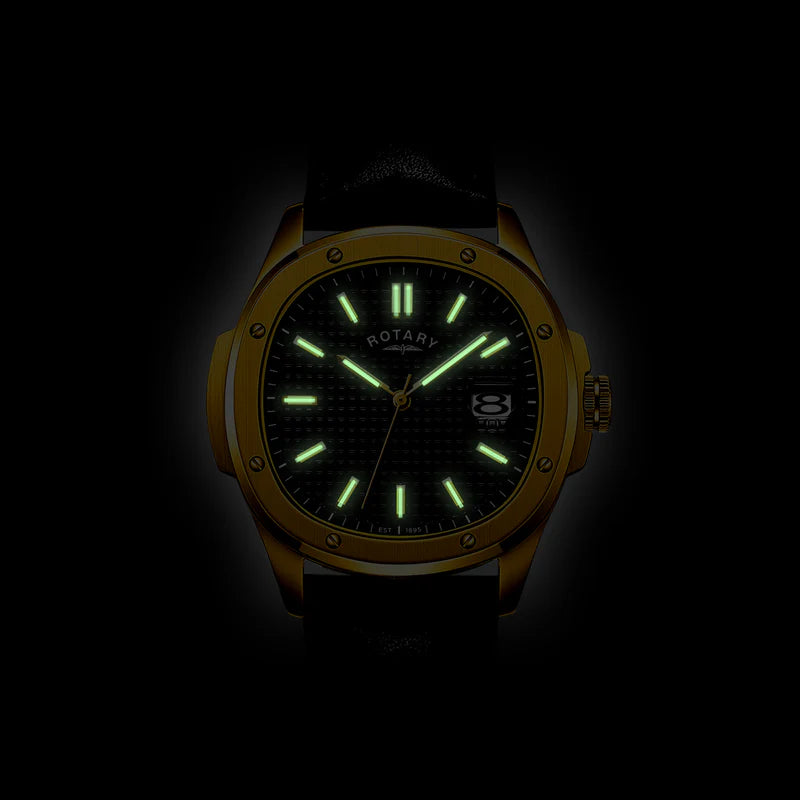 Rotary Apex100 Men's Watch Black Leather Gold GS05578/04