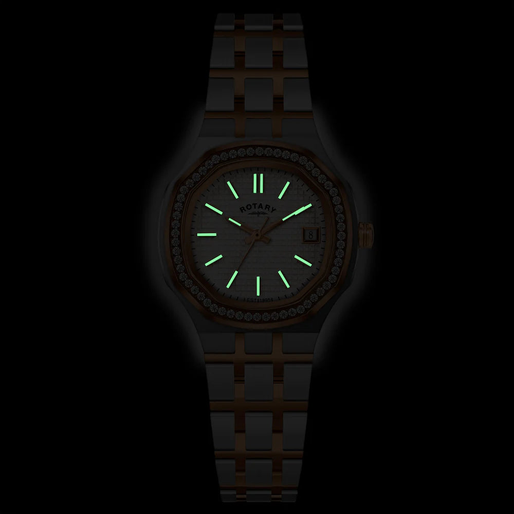 Rotary Brilliance Octagonal Ladies Watch Rose Two-Tone RLB10015/01