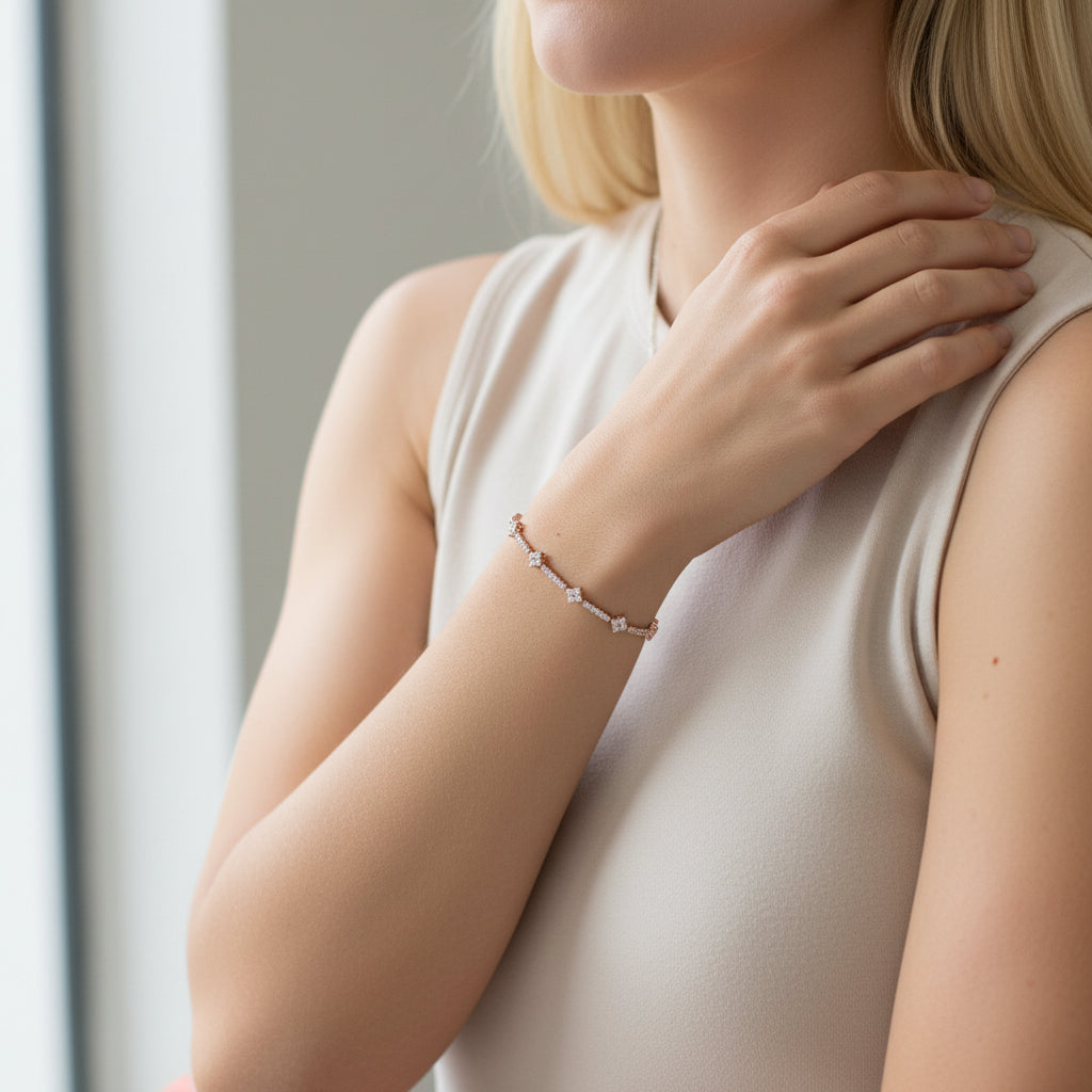 Expertly crafted with a stunning diamond cluster and intricate floral pattern, this Round Diamond Cluster Tennis Bracelet is the epitome of elegance and luxury. Sparkle and shine with this timeless piece, perfect for any occasion.