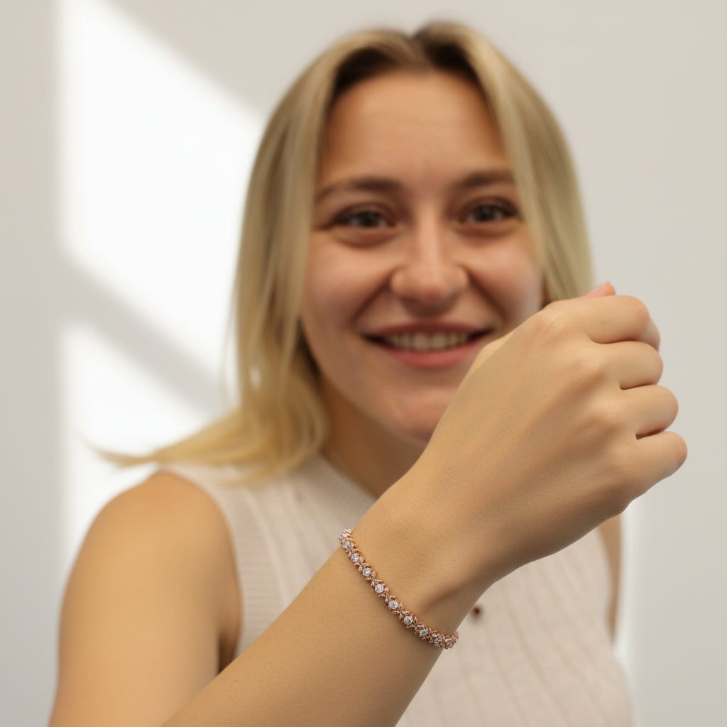 Floral elegance meets timeless sparkle with our Round Diamond Floral XO Bracelet. Adorned with round cut diamonds in a charming XO pattern, this bracelet adds a touch of romance to any outfit. Perfect for special occasions or everyday wear, it's a must-have accessory for those who appreciate both beauty and brilliance.