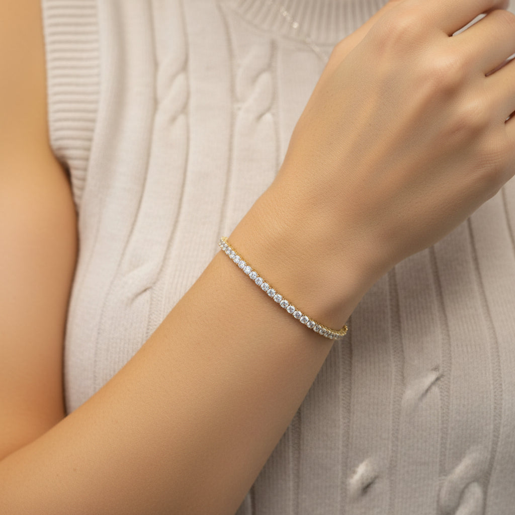 Indulge in timeless elegance with our Round Diamond Tennis Bracelet. With a classic design and exquisite claw setting, this bracelet radiates sophistication and grace. Perfect for any occasion, it's sure to be a statement piece in your jewellery collection. Complete your look with this luxurious piece.