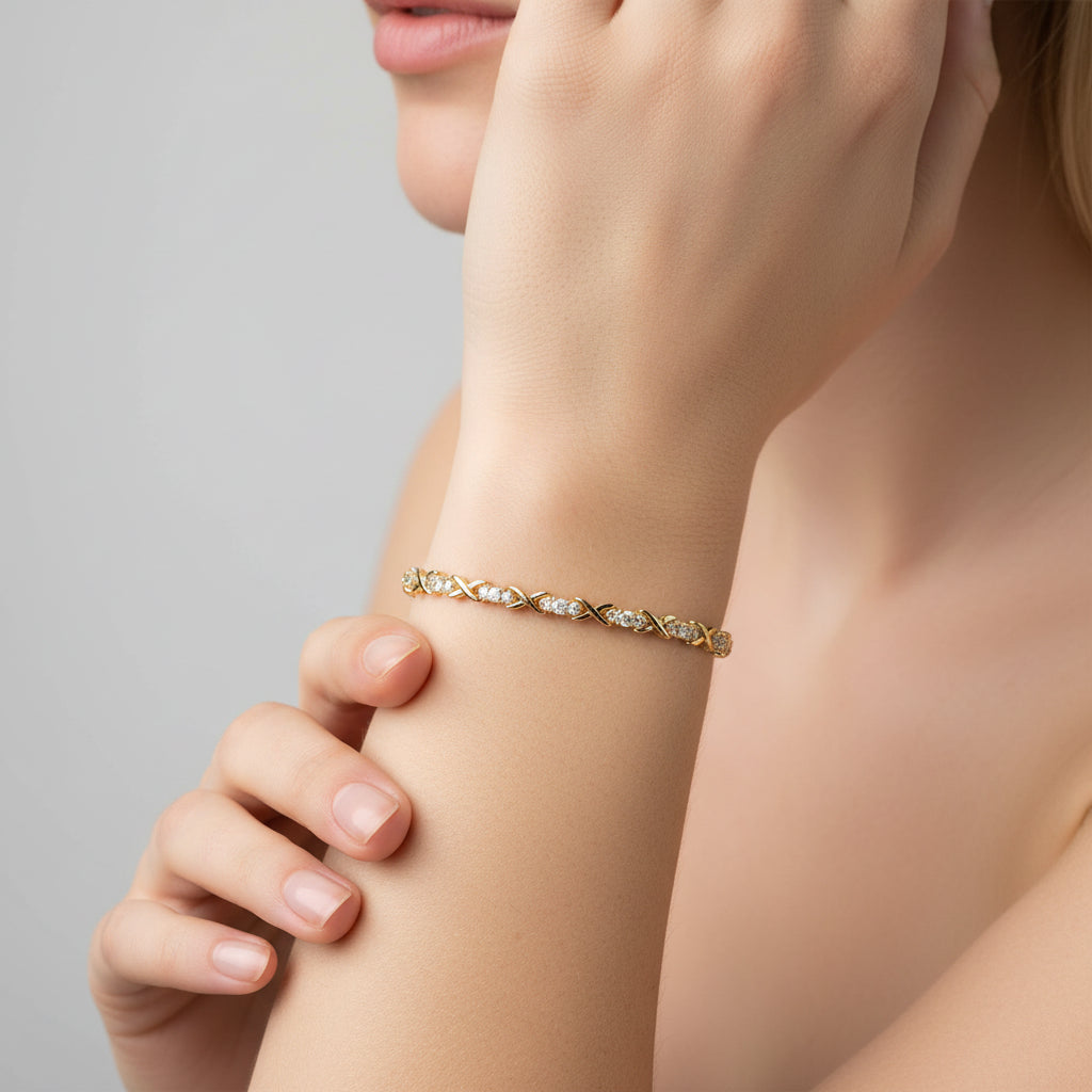 Sparkle and shine with our Round Diamond XO Tennis Bracelet! Adorn your wrist with this stunning piece featuring round cut diamonds set in a classic XO design. Perfect for adding elegance to any outfit and a beautiful reminder of love and affection. Upgrade your jewellery collection today!