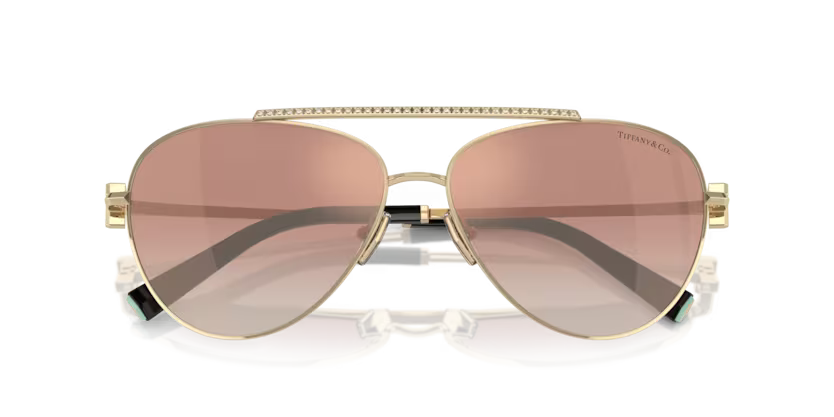Tiffany & Co. Ladies Pilot Sunglasses Pale Gold Frame Pink Lens TF3101B 62093N