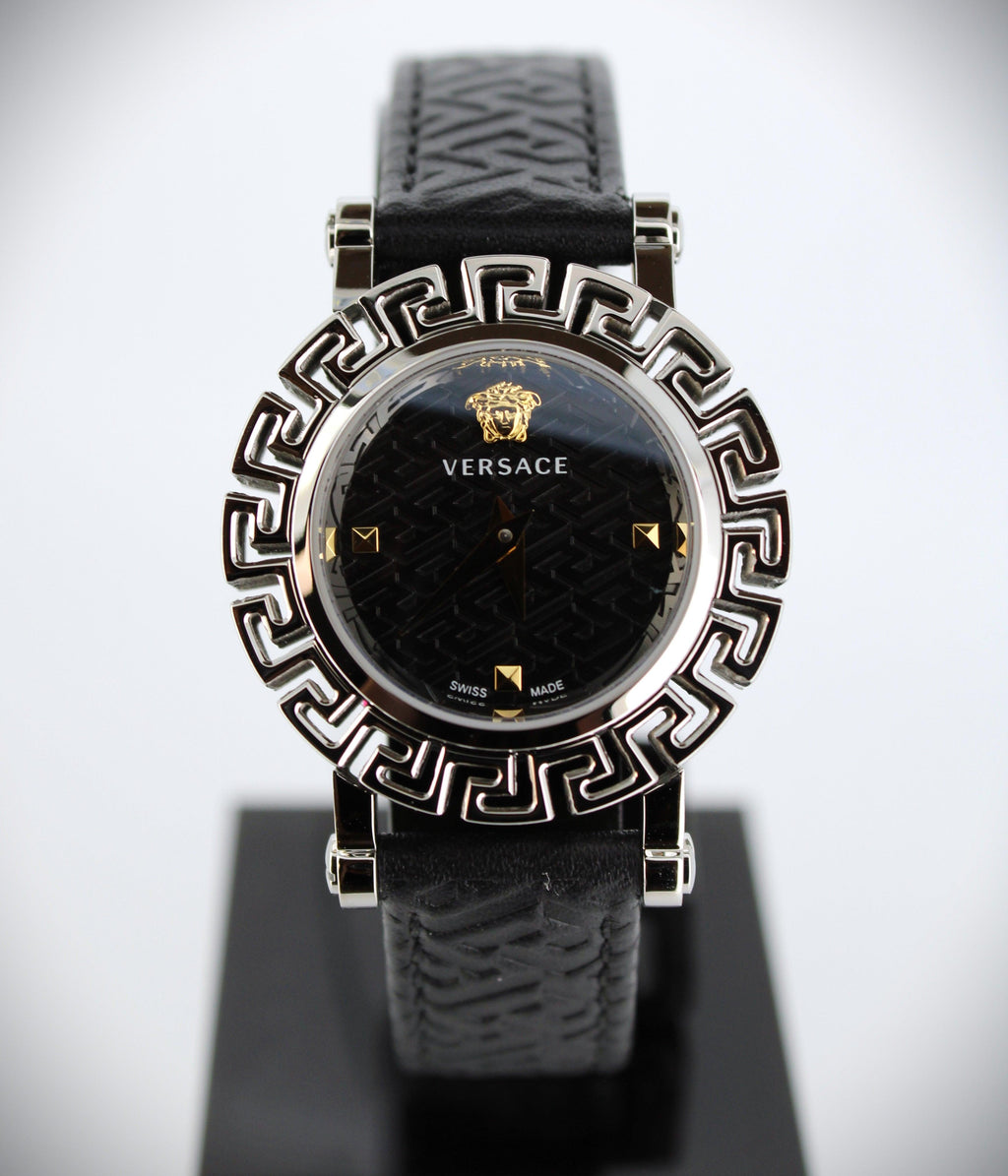 Versace Greca Glam Watch Ladies Black Leather VE2Q00122